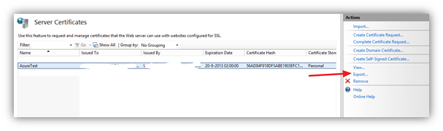 Export certificate