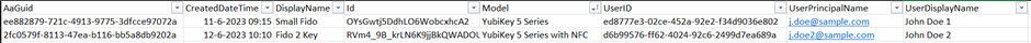 I’ve created a PowerShell script which produces an export (CSV format) including the AAGUID of the registered FIDO2 security keys per user and other information like the model. The report file includes all of the following information: